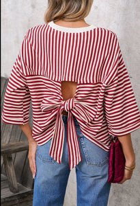 Pre-Order Multicolour Striped Round Neck Ribbed Knit Long Sleeve Top