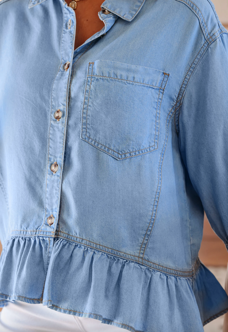 Lightweight and fun. She goes with all the colorful jeans and is just enough tummy coverage. This is a bit of a wider cut by design so I will be doing a medium.