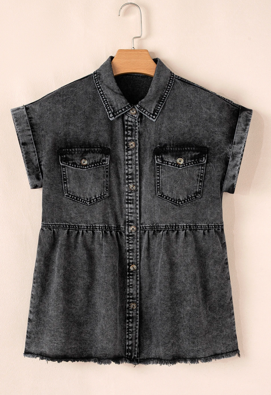 Covers the tummy and is fun paired with skinny bottoms. Denim is always a good idea.