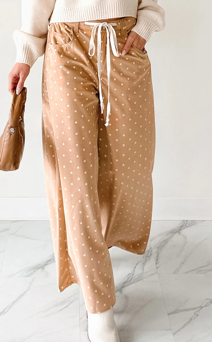 I can't help but give these a try as I have all the cream sweaters to go with them. I do NOT like her shoes and will be wearing mine different but we love all things Khaki and Polk a Dot so these need to be ours. All things wide leg, all the time.