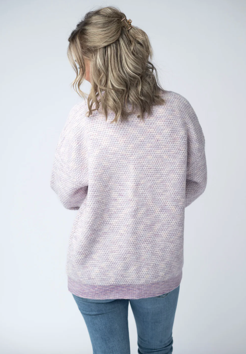 Layer up with the Kinsley Cardigan, your new spring essential! This mid-weight open cardigan features a pretty purple mix for a fun, fresh look. Practical front pockets keep your hands cozy while you're on the go. Perfect for throwing over your favorite tee or dress when the weather calls for an extra layer of warmth.