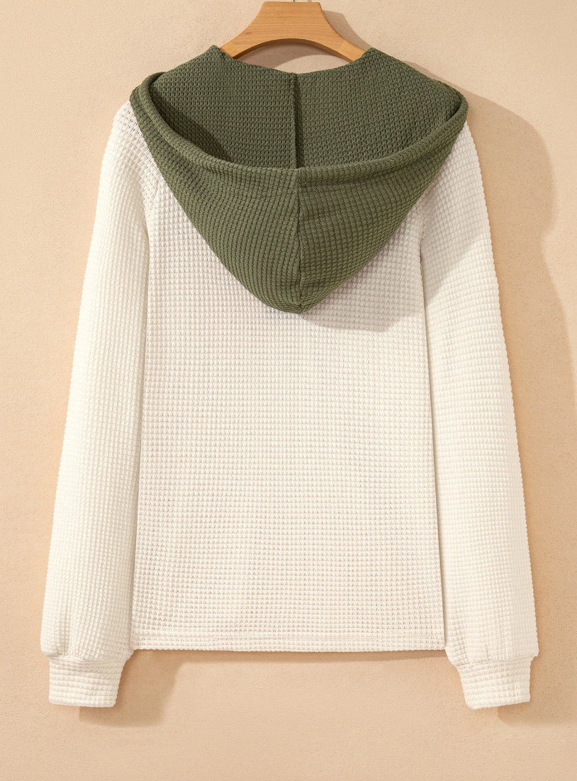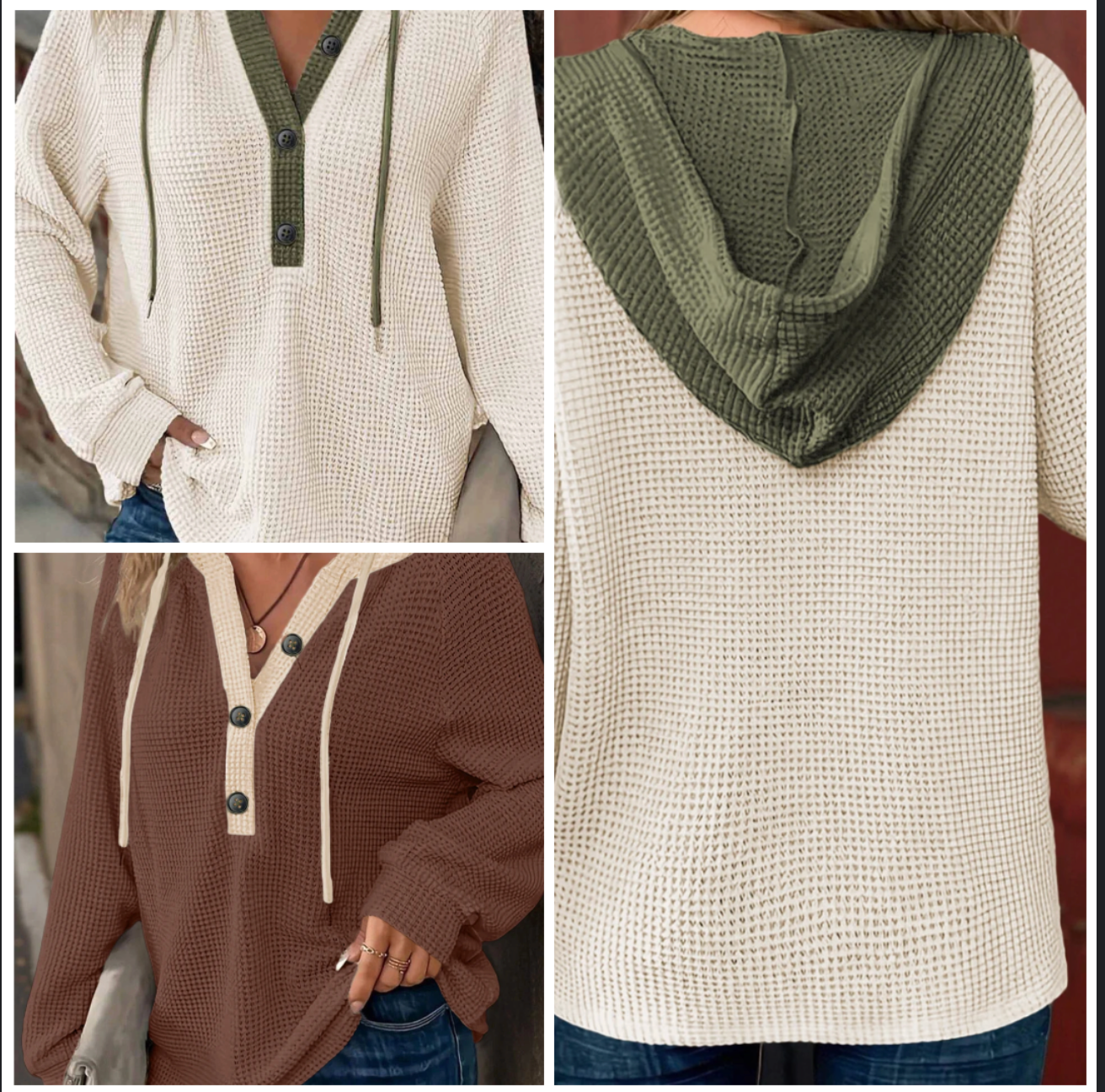 Lower neckline and a hood. You've got to love it. Fun color combos and great with jeans.