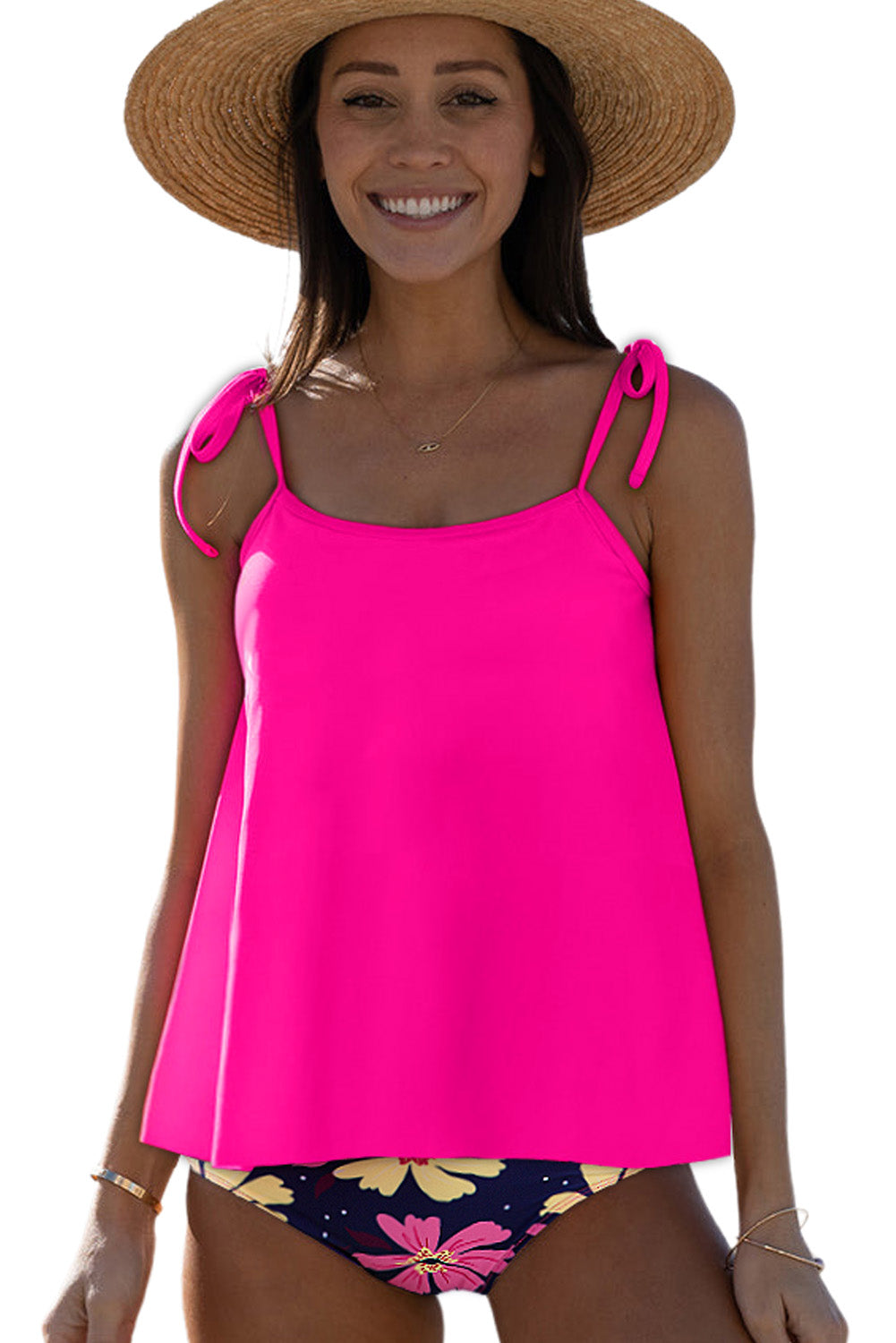 - Vibrant rose red color complements the tankini set, creating a stylish and eye-catching ensemble for poolside lounging or beach days.