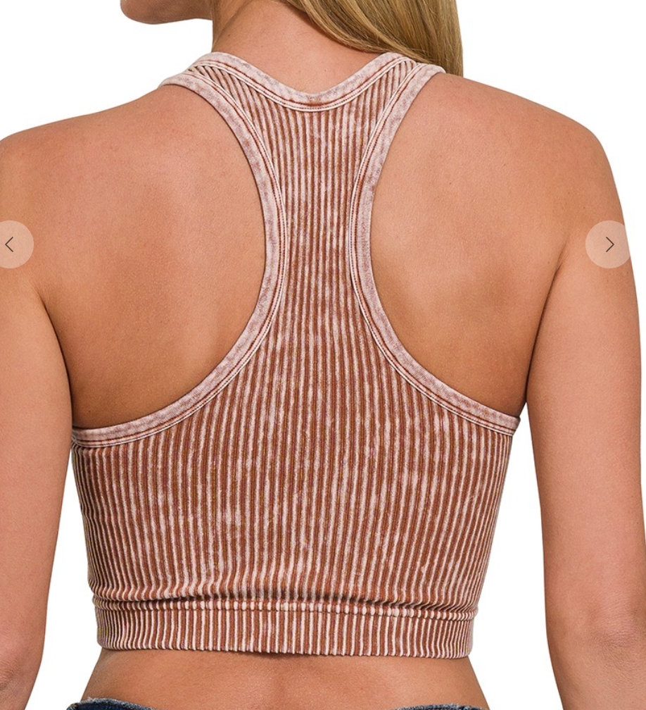 STONE WASHED SEAMLESS RACERBACK TANK TOP W BRA PAD