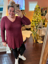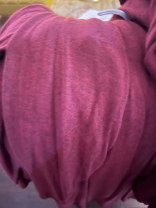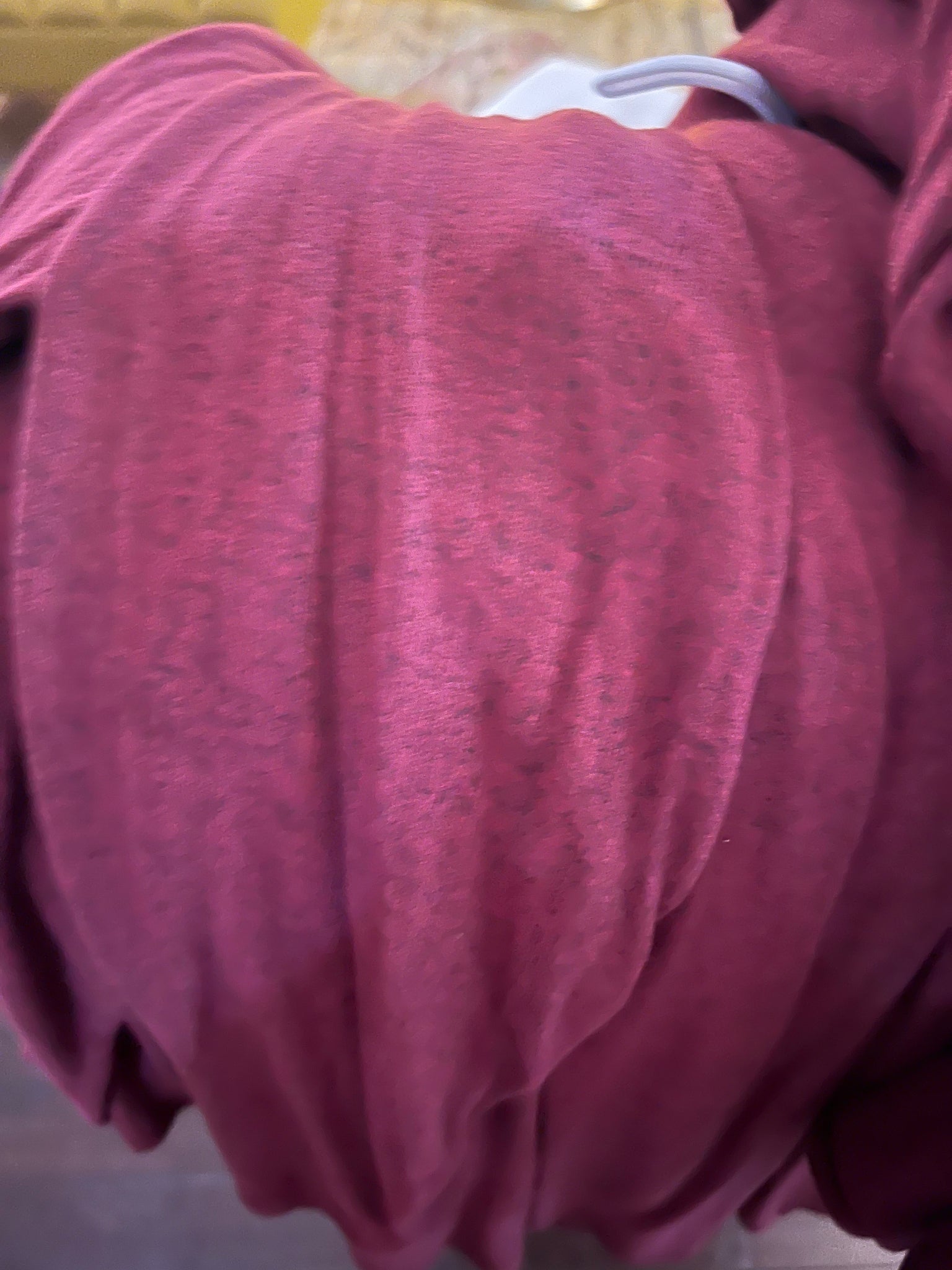 Love the lower neckline & tulip hem. This one also has a tie in the back so you can pull it back for a slimmer look. I have it tied in the back for this picture but would probably cut it if it was mine. This is a two tone over the top soft tunic.