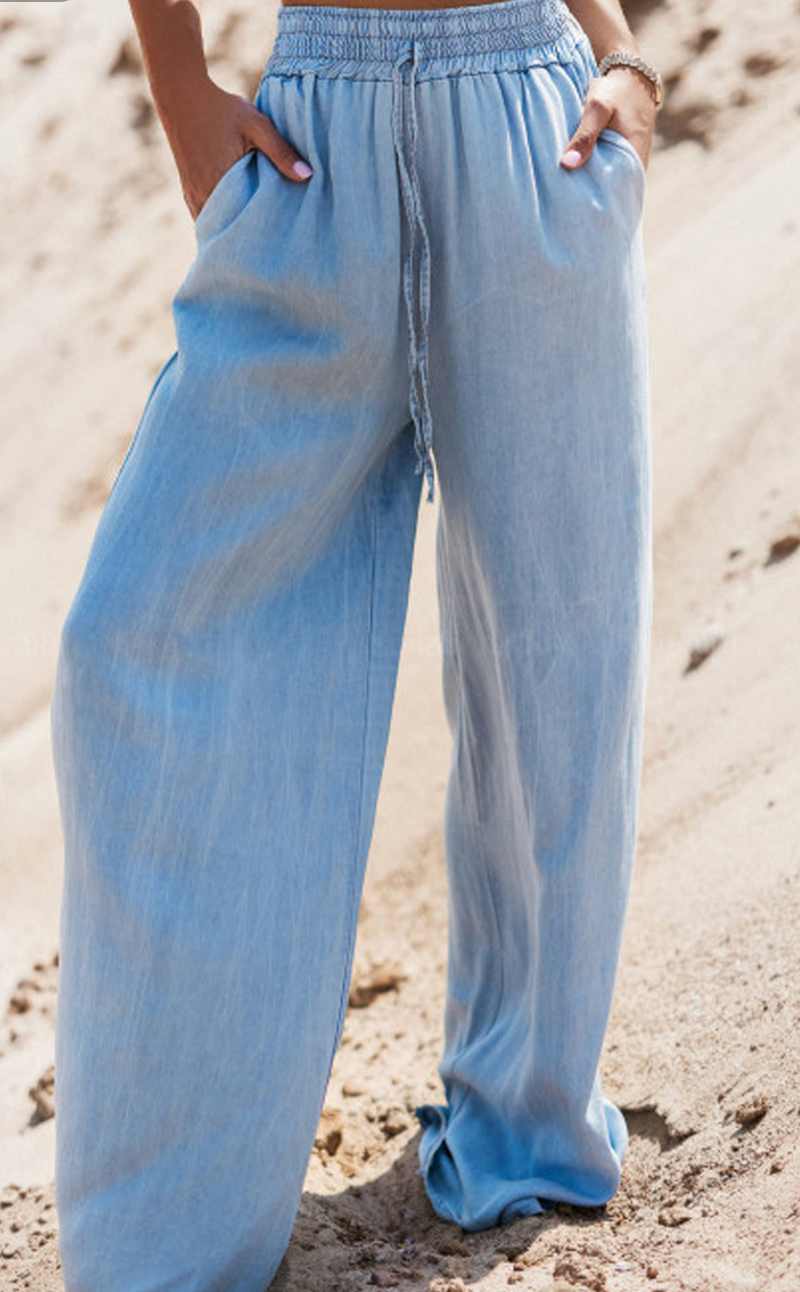 These are so good and are going to go with all the things. Super lightweight, great fabric, pockets, and a drawstring waistband. Not too long and the perfect width in the legs. This model must be short because they don't have that much length.