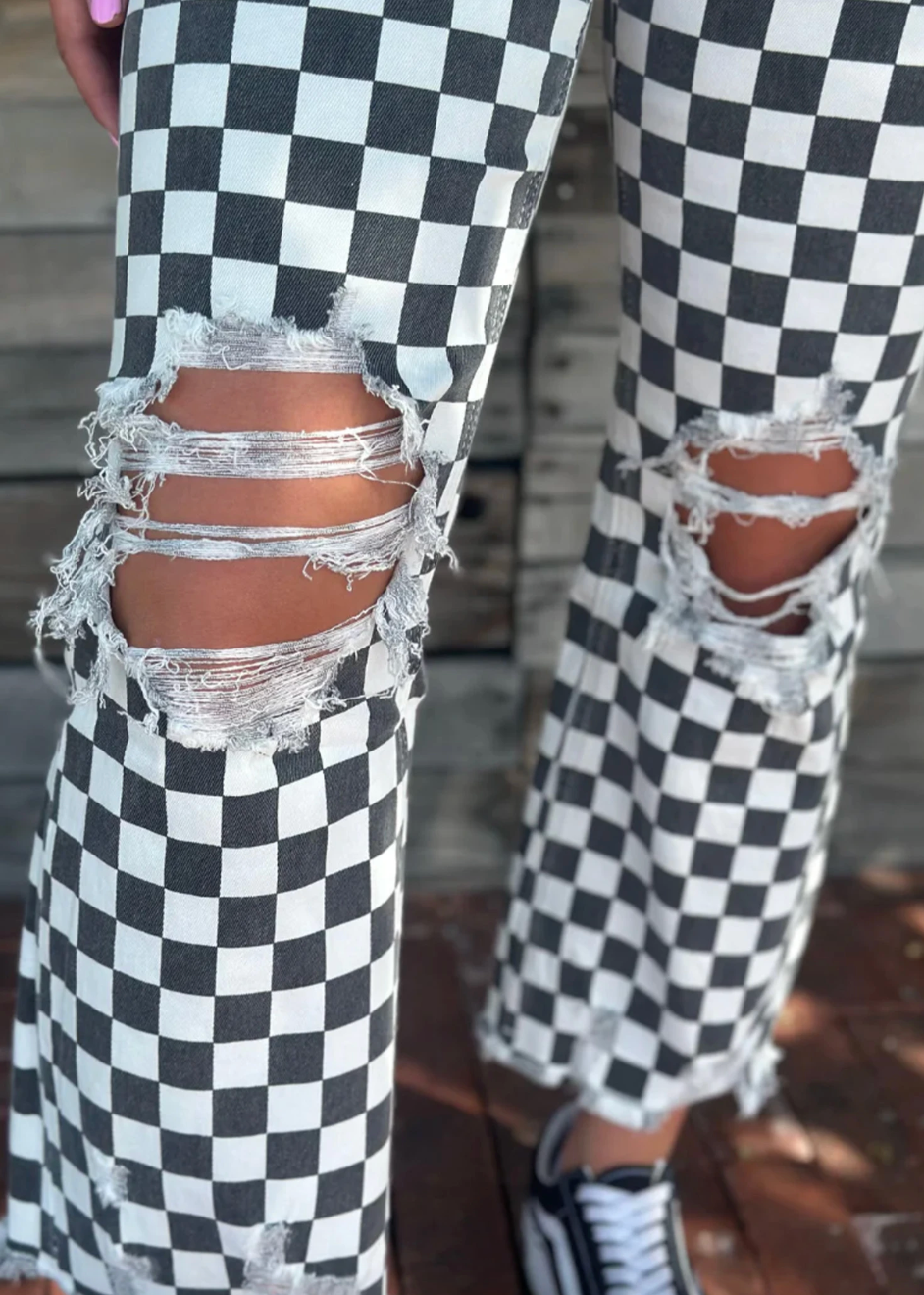 Where are my moto girls at? If not moto maybe you just love all things checkered like I do. So fun with any color top and your tennis shoes.
