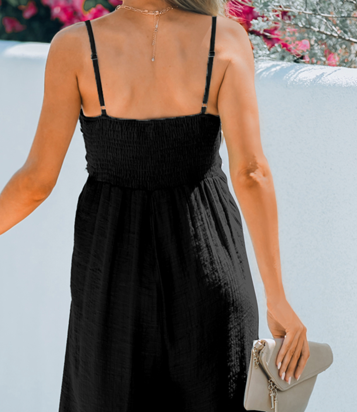This is so good. Smocked back and adjustable straps. Great for the shorties too as it's ankle length.