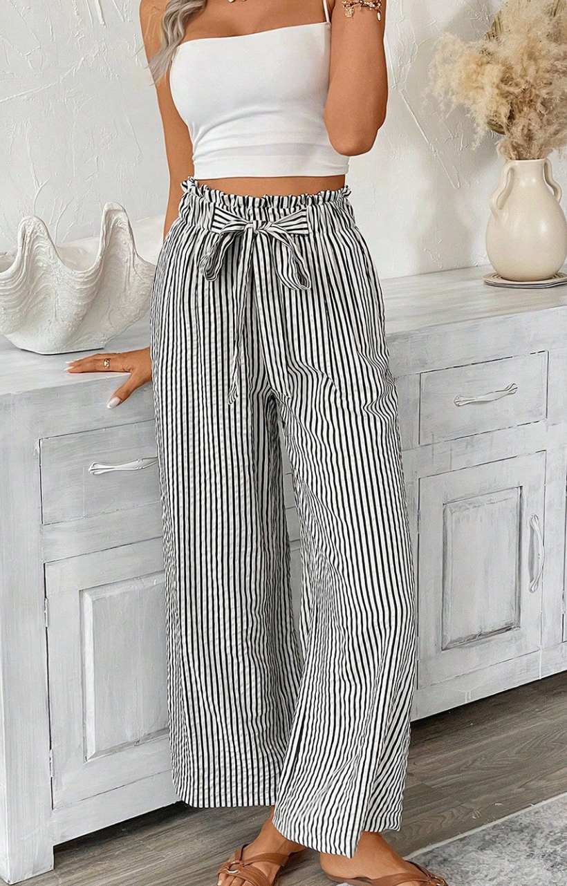 For me it's all about the ruffle at the top and the bow. Vertical stripes are a win every time. Great with a smaller top and a tuck. Fun with a cardigan come Fall.