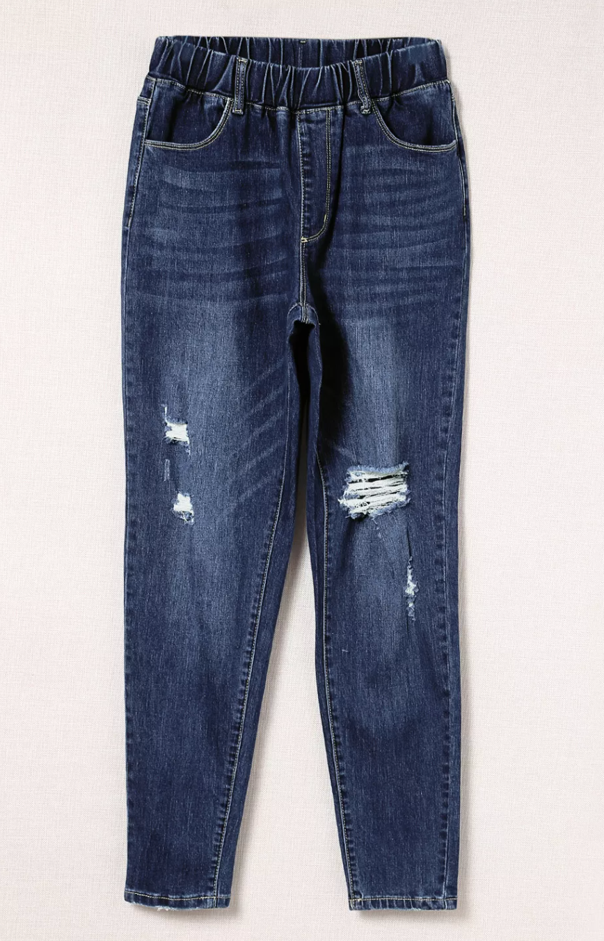 What can I say. I'm a fan of jeggings and I'm ok with it. Everyone should love jeans that cover the tummy and have enough stretch that you can pull them on and they keep all the lumps and bumps tucked. Fun distressing on these that isn't too much. Great with all your fall tops, sweaters, cardi's, and shakets.