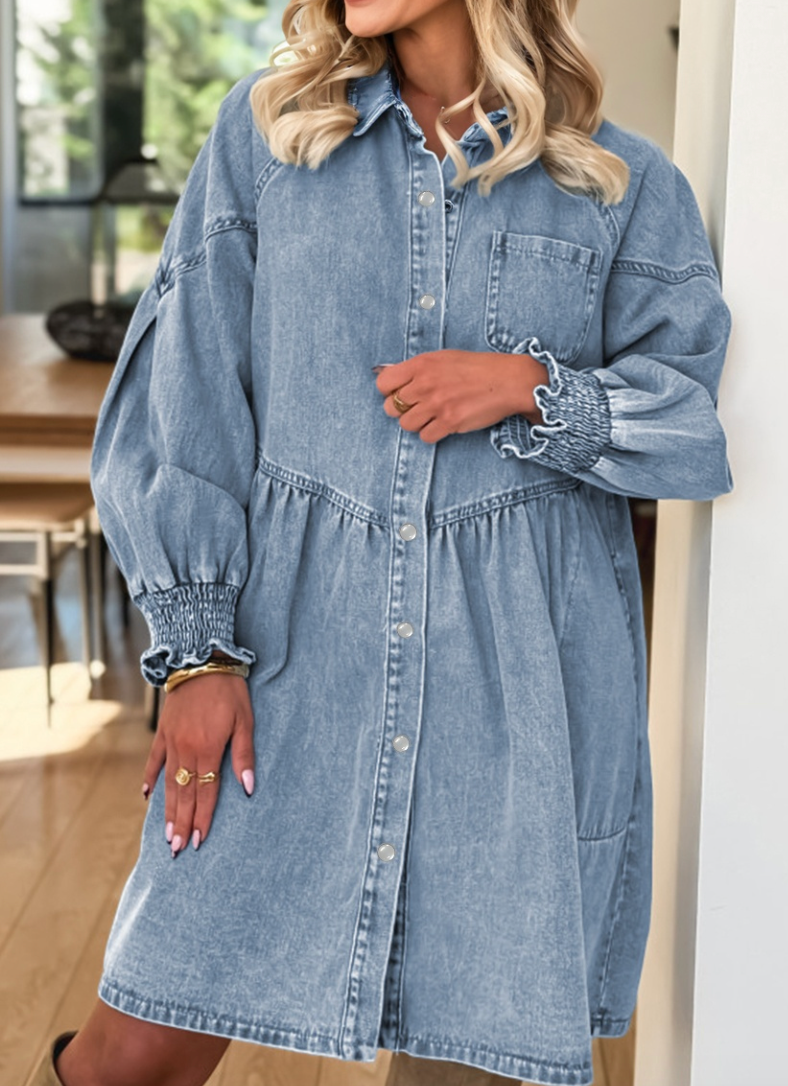 Everyone needs a denim dress and this one is forgiving and not at all fitted. A fun fit with your favorite boots.