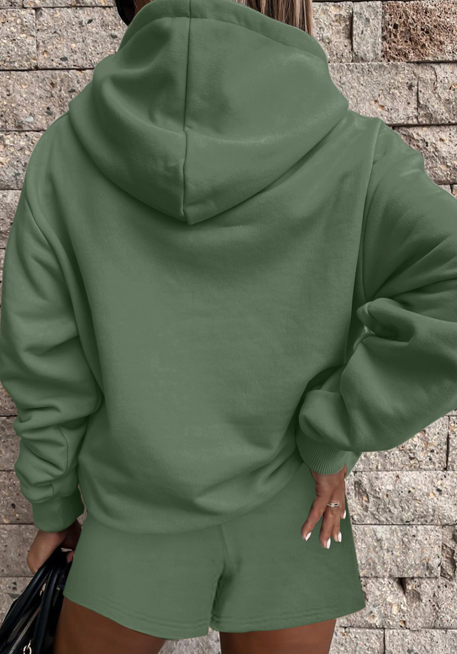 I'm so happy sets are here to stay. This sweatshirt is great on it's own but even better paired with the shorts. I love the green as much as the black