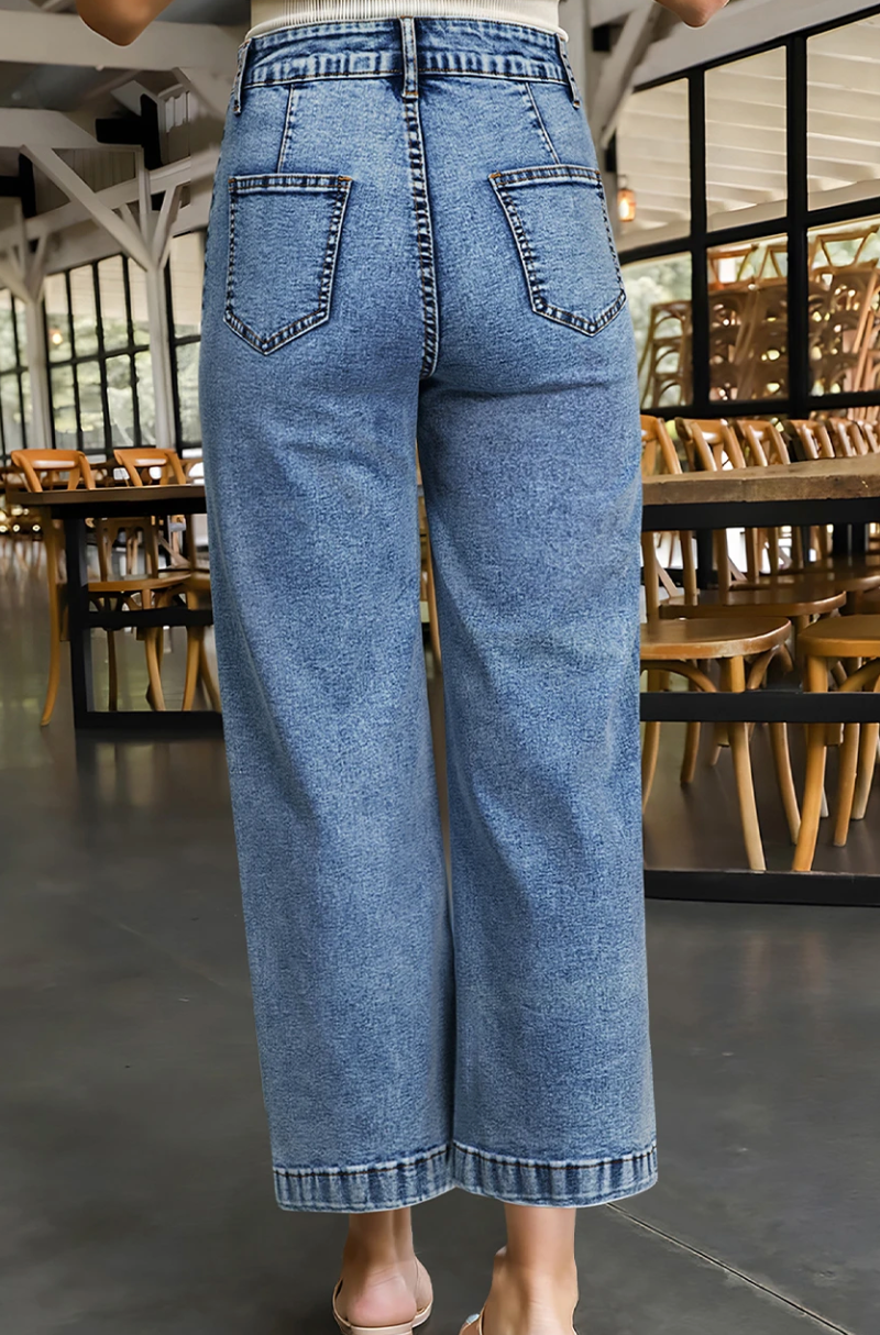 Jeans right now are all about the front pocket. They hide the tummy and allow for a bit of a front tuck or a smaller more fitted top.