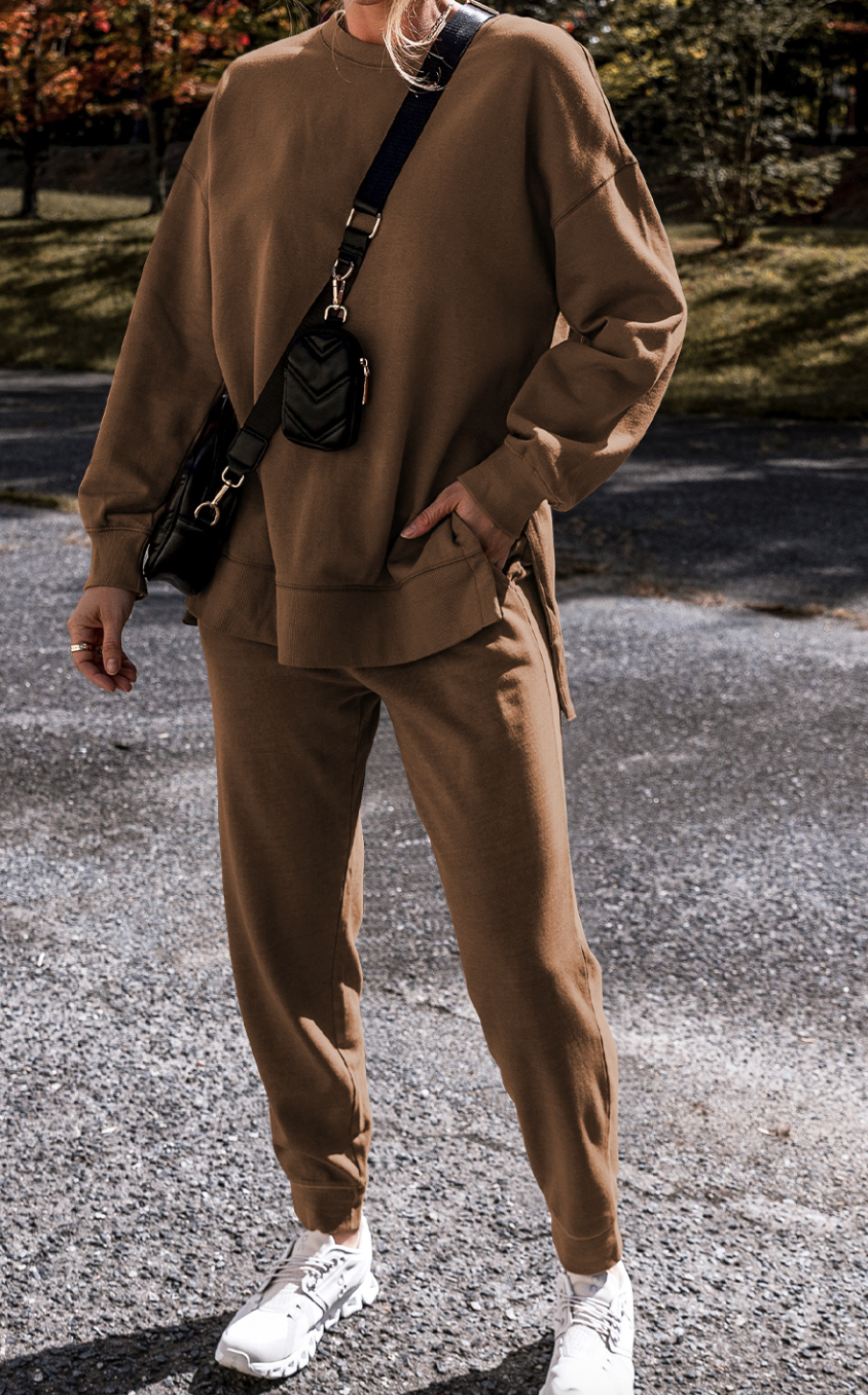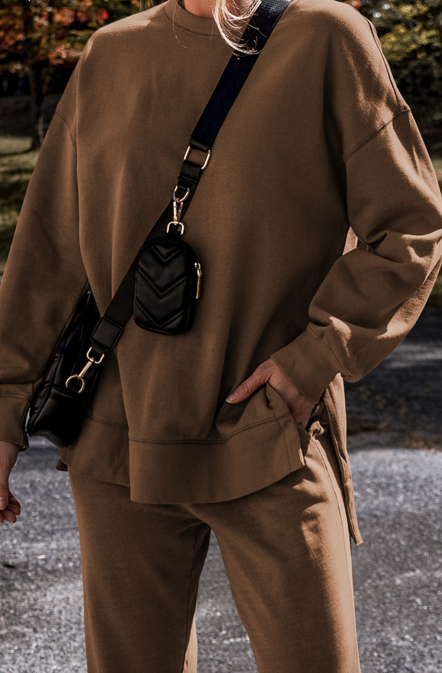 I'm a sucker for the sets that are GREAT together or worn separately. This is just that. The side slit sweatshirt is my favorite cut.
