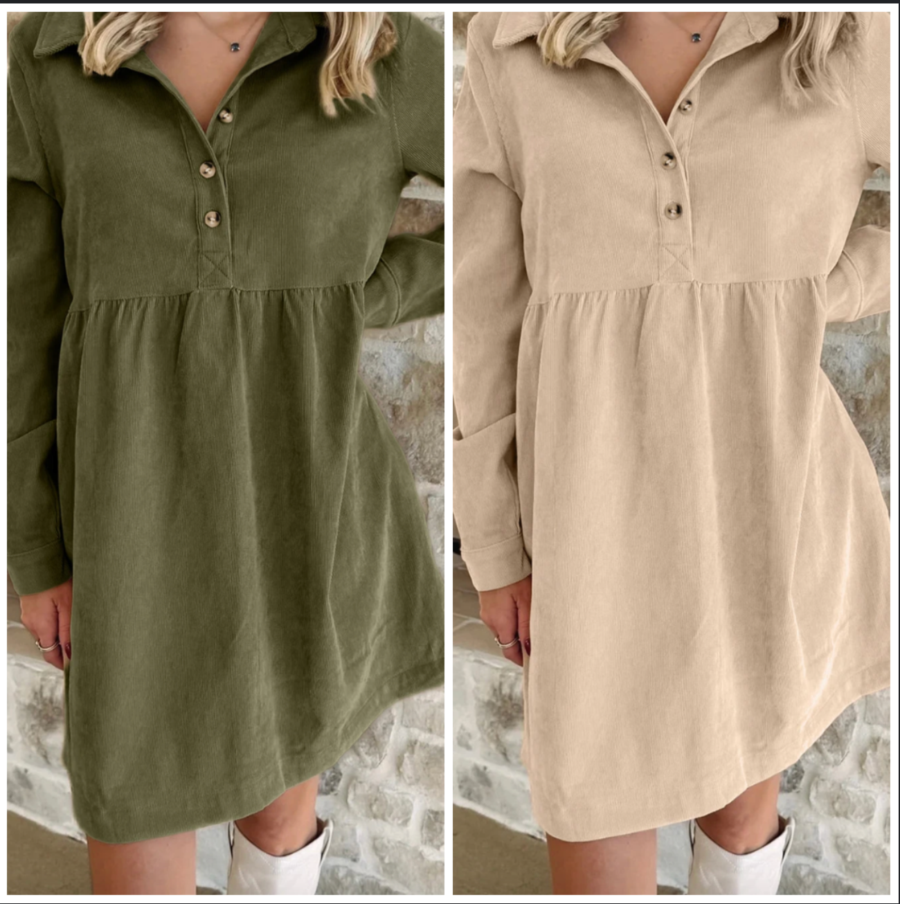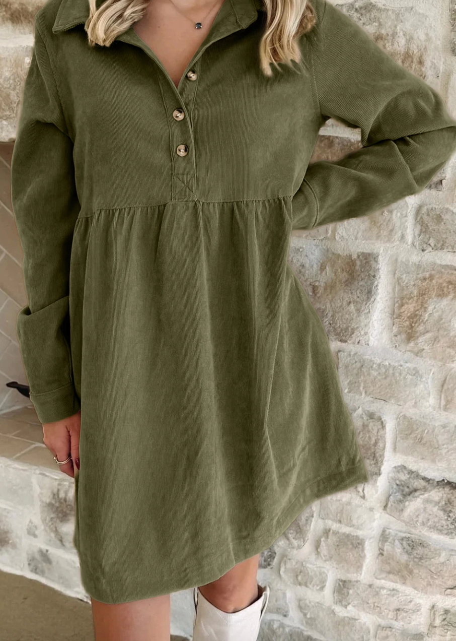 It's been a minute since we have had a babydoll moment. Love this corduroy and the fact that there is the right amount of room for the chest. A cute fit with all your favorite boots.