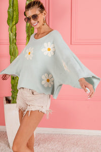 Who's loving the flower power vibes? Some are good but this one is GREAT. That lower neckline and the colors are awesome! Oversized and going to fit a lot of bodies. Dolman sleeves.