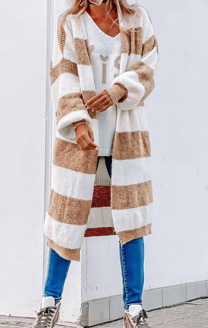This oversized cardigan is so good. My new favorite Khaki and white too.