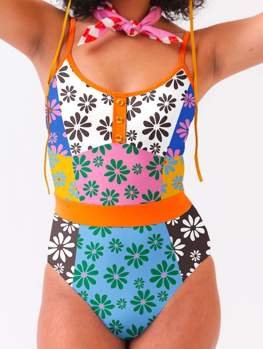 What a perfect cut with low around the legs and buns. Adjustable straps and the cutest fabric EVER!