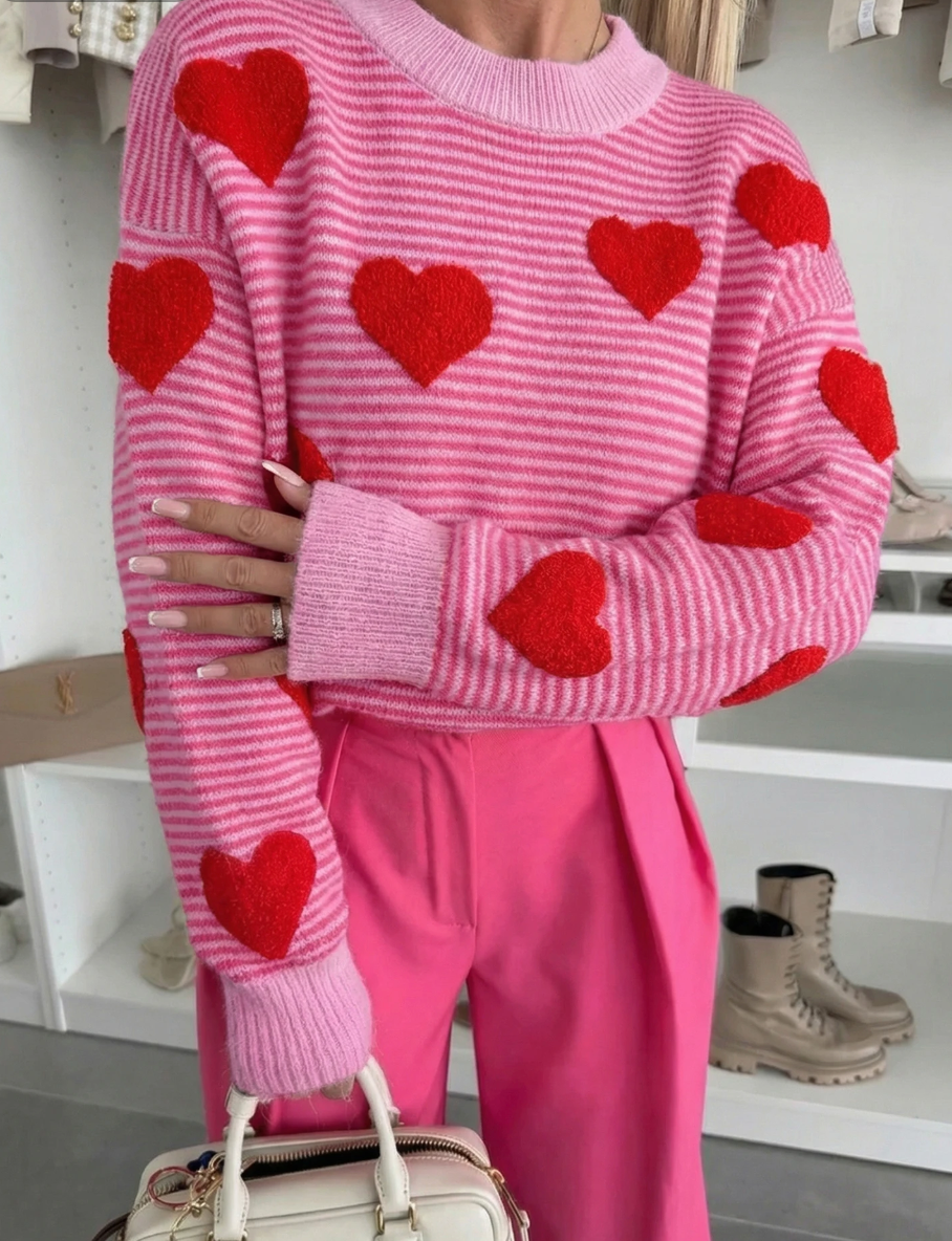 Pre-Order Rose Stripe Contrast Heart Pattern Valentine Knit Sweater