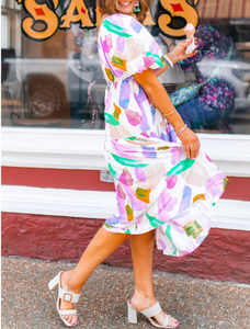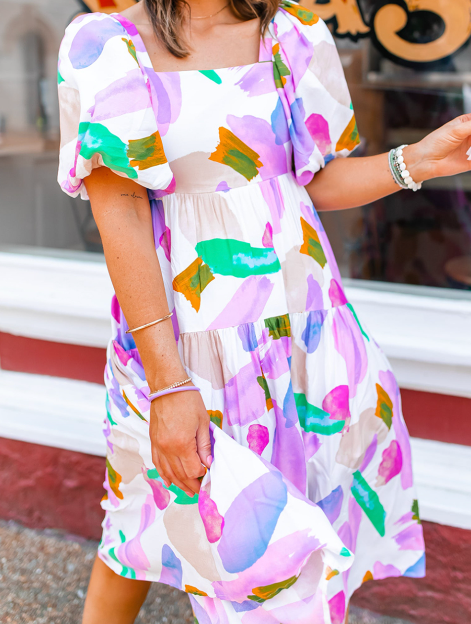 You can't go wrong with a purple, painted, midi with a smocked back.