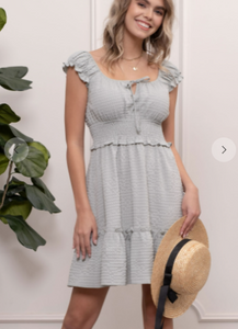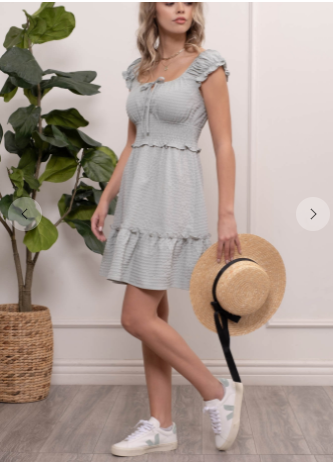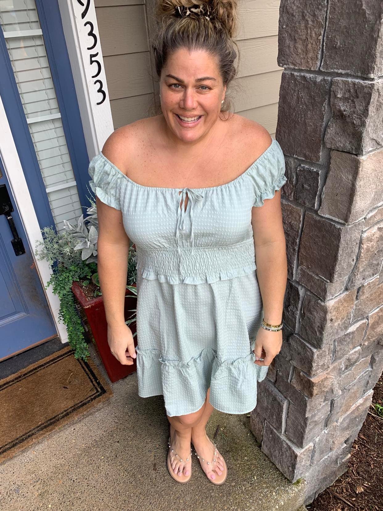 Such a great fit on or off the shoulders this dress hits in all the right places and is so fun. I had the 1XL on at the show and loved it. Not too short, can wear a regular bra, supper flattering cut.