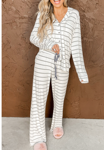 I'm not really sure PJ's can get any better than this. While I don't suggest wearing then to the store you could in a pinch and you'd still look better than 90% of the people you ran into. Cozy with a drawstring waist and buttons up the front of the top. Covers all the tummy and buns.