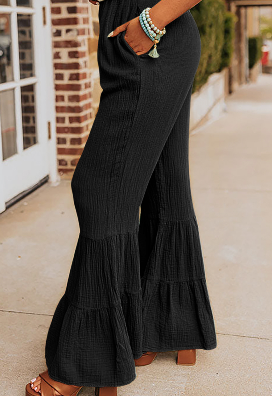 Again with that smocked cotton that we all can't get enough of. Fun ruffle bottoms and pockets make these pants perfection.